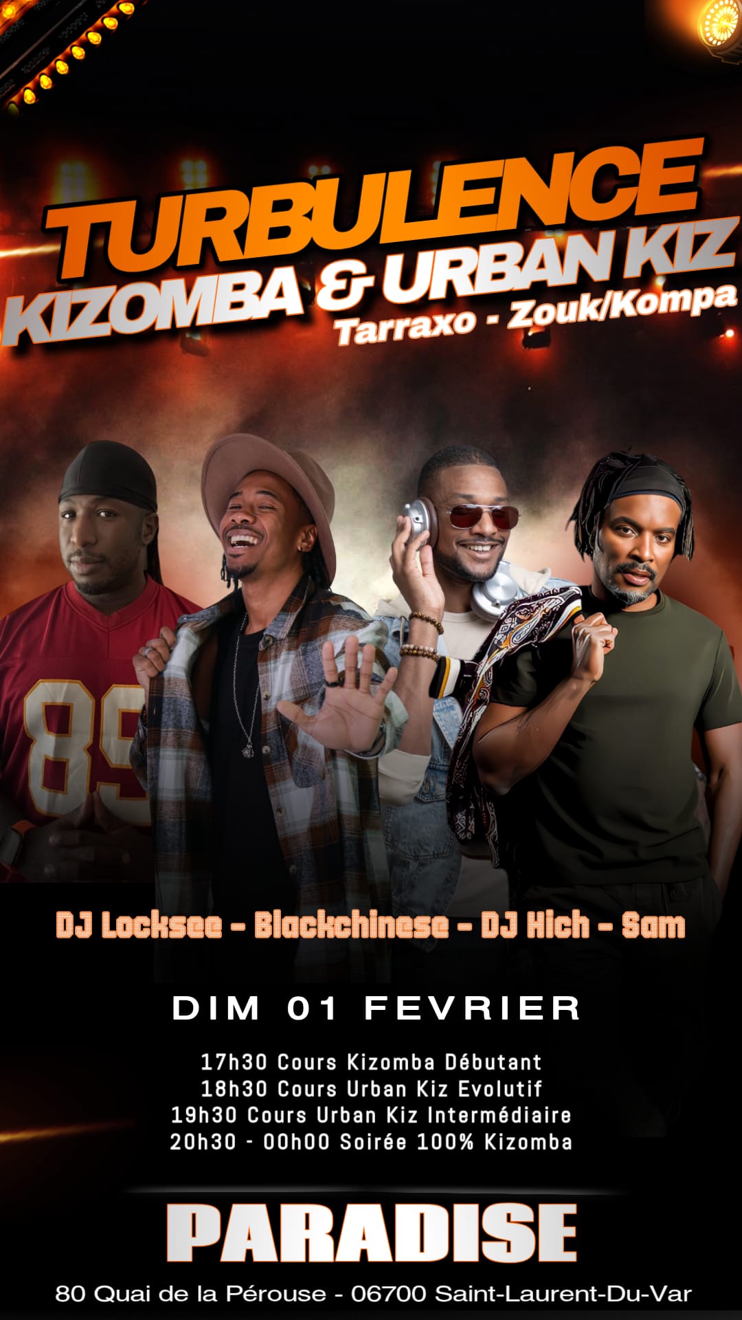 TURBULENCE 22 janvier 2026 / Commentaires fermés sur TURBULENCE TURBULENCE par Patrick & Guilaine 17 17 people viewed this event. Salsa – Bachata – Kizomba S’inscrire à l’évènement Pour vous inscrire à cet évènement, envoyez vos informations par e-mail à olivieroche@gmail.com . Inscrivez-vous via le webmail : Gmail / AOL / Yahoo / Outlook Date et heure 01-02-2026 @ 17:30 à 02-02-2026 @ 02:30 Lieu Paradise (ex. Django) Partager avec des amis Facebook Twitter Linkedin Xing Pinterest
